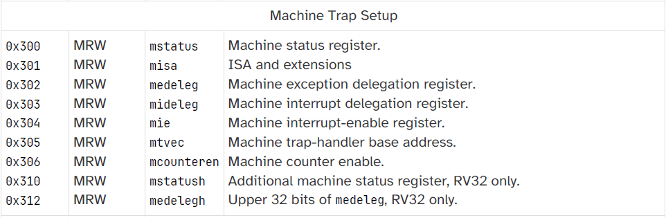 ->答案就是有物理寄存器,跟32个通用寄存器一样,所以在numu中添加定义,具体的地址在riscv特权架构中有定义,如下表所示